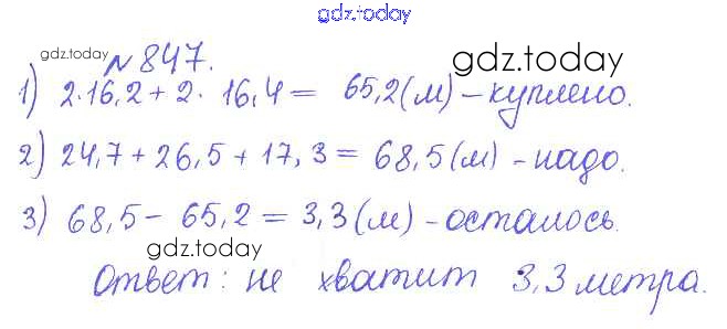 Ответы к Решение. Задачи 847 Сборнику задач и упражнений по Математике для 5 класса Гамбарин, Зубарева Мнемозина 2011