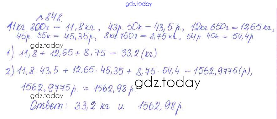 Ответы к Решение. Задачи 848 Сборнику задач и упражнений по Математике для 5 класса Гамбарин, Зубарева Мнемозина 2011