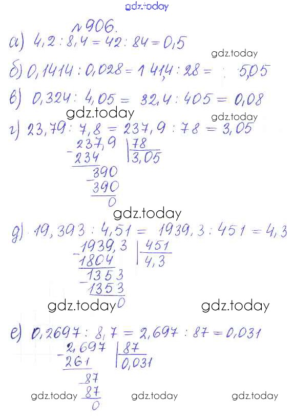 Ответы к Решение. Задачи 906 Сборнику задач и упражнений по Математике для 5 класса Гамбарин, Зубарева Мнемозина 2011