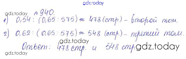Ответы к Решение. Задачи 940 Сборнику задач и упражнений по Математике для 5 класса Гамбарин, Зубарева Мнемозина 2011