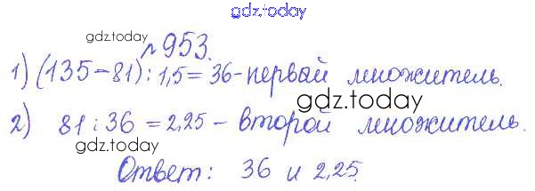 Ответы к Решение. Задачи 953 Сборнику задач и упражнений по Математике для 5 класса Гамбарин, Зубарева Мнемозина 2011