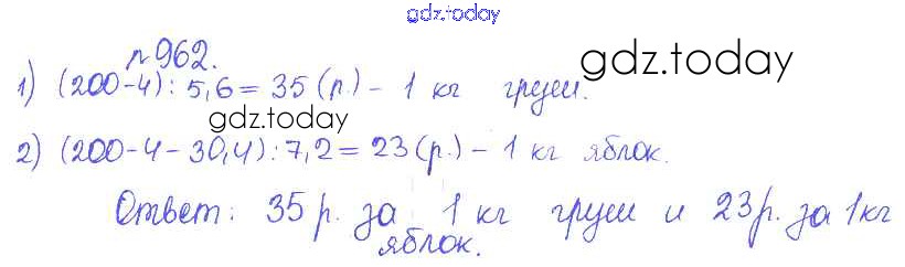 Ответы к Решение. Задачи 962 Сборнику задач и упражнений по Математике для 5 класса Гамбарин, Зубарева Мнемозина 2011