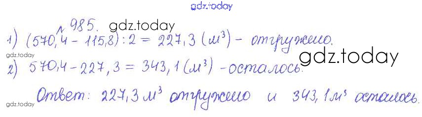 Ответы к Решение. Задачи 985 Сборнику задач и упражнений по Математике для 5 класса Гамбарин, Зубарева Мнемозина 2011
