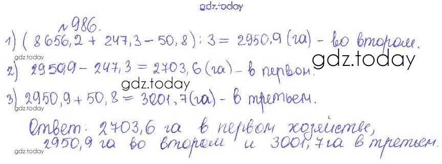 Ответы к Решение. Задачи 986 Сборнику задач и упражнений по Математике для 5 класса Гамбарин, Зубарева Мнемозина 2011