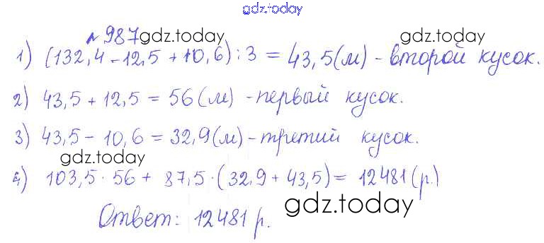 На страницах сайта gdz.today вы найдете учебный и вспомогательный материал, направленный на улучшения знаний школьной программы. ГДЗ - онлайн мир знаний Решение. Задачи 987 Сборнику задач и упражнений по Математике для 5 класса Гамбарин, Зубарева Мнемозина 2011