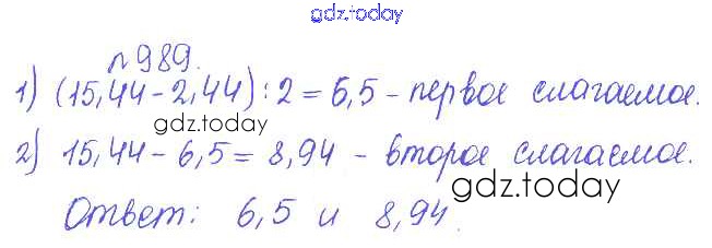 Ответы к Решение. Задачи 989 Сборнику задач и упражнений по Математике для 5 класса Гамбарин, Зубарева Мнемозина 2011
