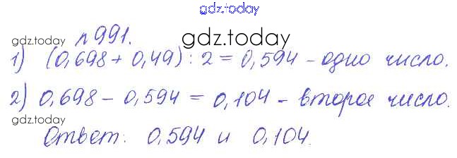 Ответы к Решение. Задачи 991 Сборнику задач и упражнений по Математике для 5 класса Гамбарин, Зубарева Мнемозина 2011