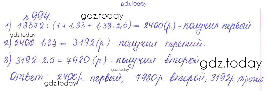 Ответы к Решение. Задачи 994 Сборнику задач и упражнений по Математике для 5 класса Гамбарин, Зубарева Мнемозина 2011