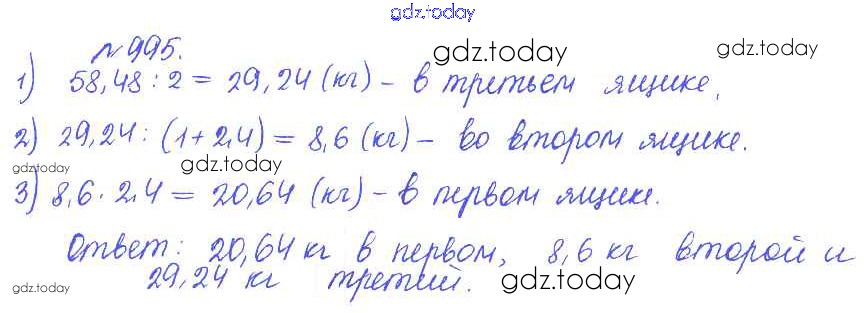 Ответы к Решение. Задачи 995 Сборнику задач и упражнений по Математике для 5 класса Гамбарин, Зубарева Мнемозина 2011
