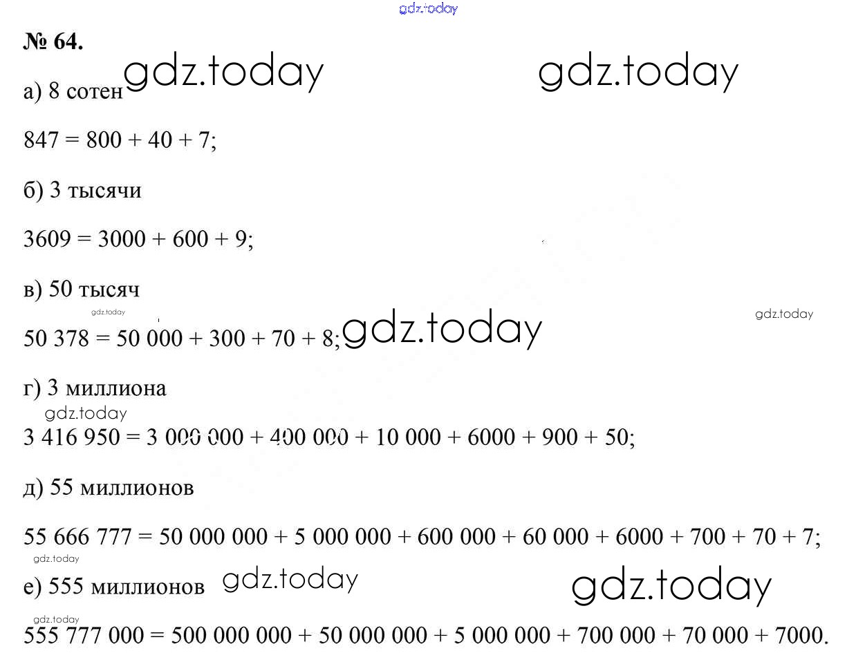 На страницах сайта gdz.today вы найдете учебный и вспомогательный материал, направленный на улучшения знаний школьной программы. ГДЗ - онлайн мир знаний Глава 1 (решение) 64 Учебнику по Математике для 5 класса Герасимов, Пирютко Образование и воспитание 2017