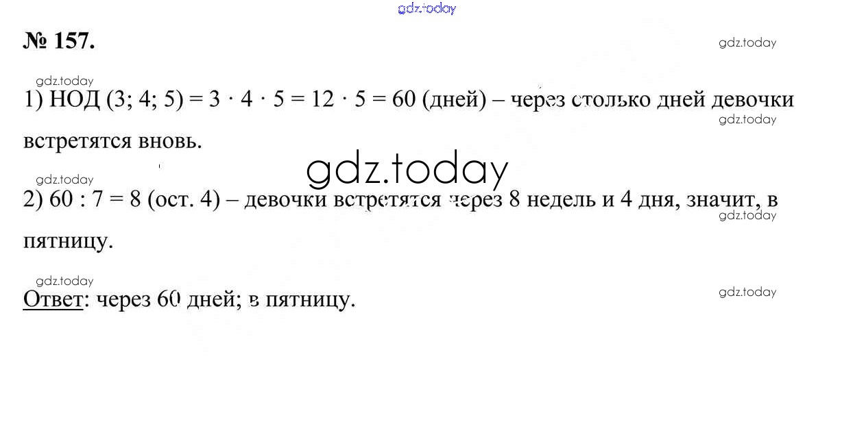 На страницах сайта gdz.today вы найдете учебный и вспомогательный материал, направленный на улучшения знаний школьной программы. ГДЗ - онлайн мир знаний Глава 3 (решение) 157 Учебнику по Математике для 5 класса Герасимов, Пирютко Образование и воспитание 2017