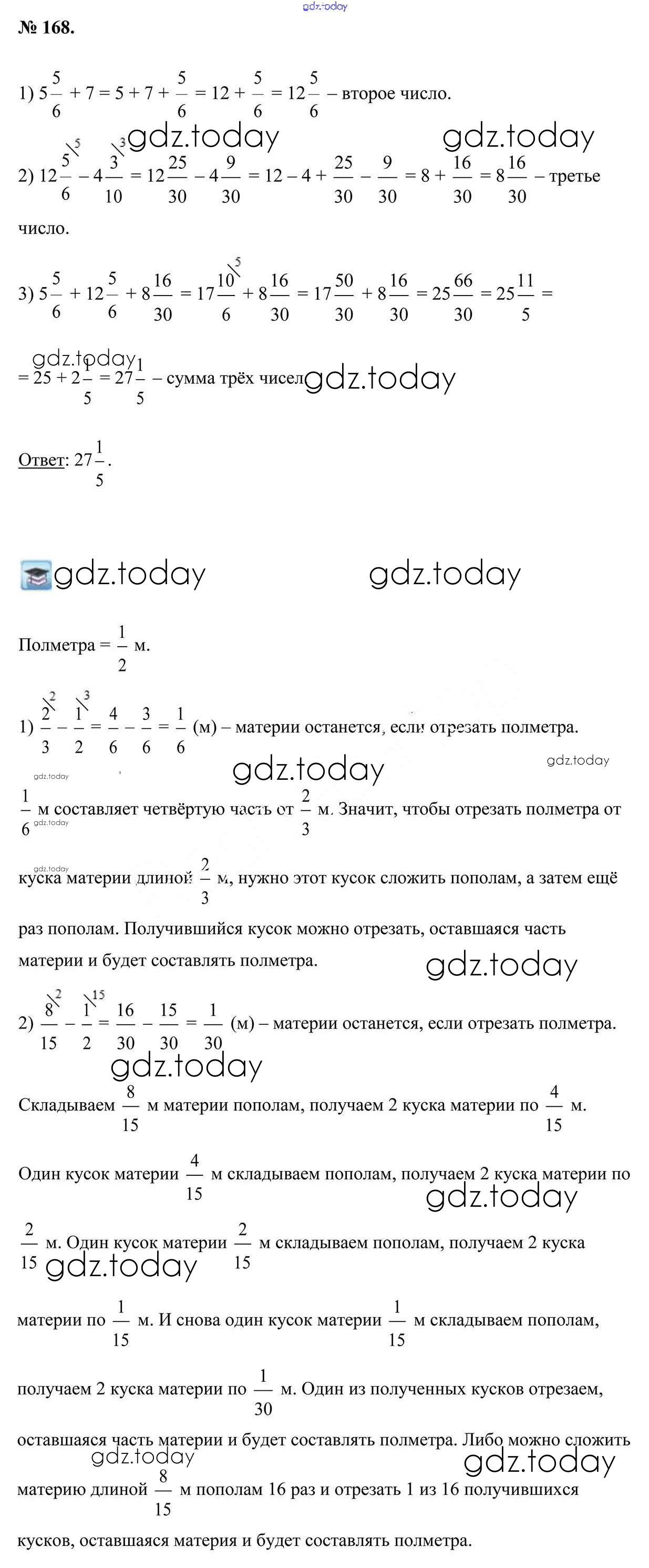 На страницах сайта gdz.today вы найдете учебный и вспомогательный материал, направленный на улучшения знаний школьной программы. ГДЗ - онлайн мир знаний Глава 3 (решение) 168 Учебнику по Математике для 5 класса Герасимов, Пирютко Образование и воспитание 2017