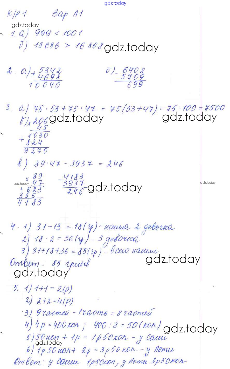 На страницах сайта gdz.today вы найдете учебный и вспомогательный материал, направленный на улучшения знаний школьной программы. ГДЗ - онлайн мир знаний Решение к КР-1. Варианты 1 Контрольным работам по Математике для 5 класса Ерина Экзамен УМК 2020