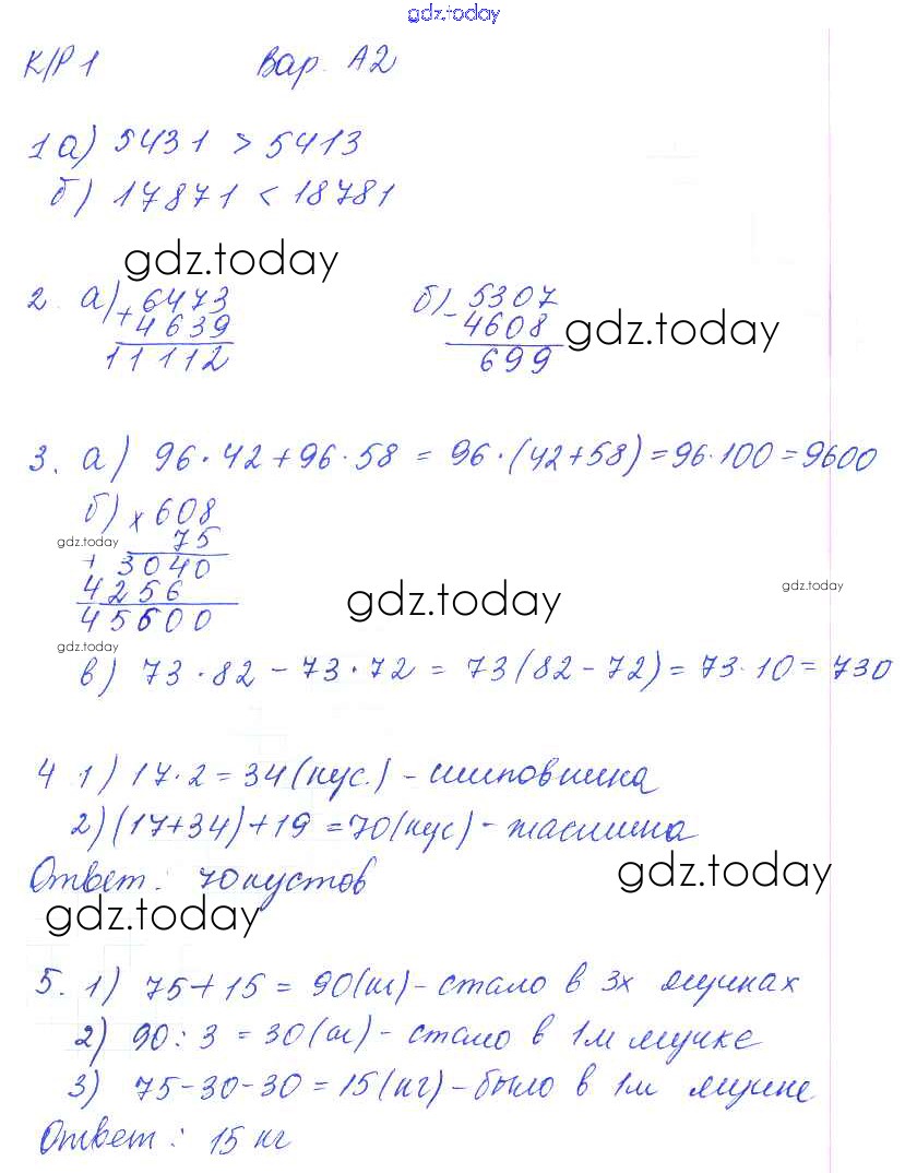 Ответы к Решение к КР-1. Варианты 2 Контрольным работам по Математике для 5 класса Ерина Экзамен УМК 2020