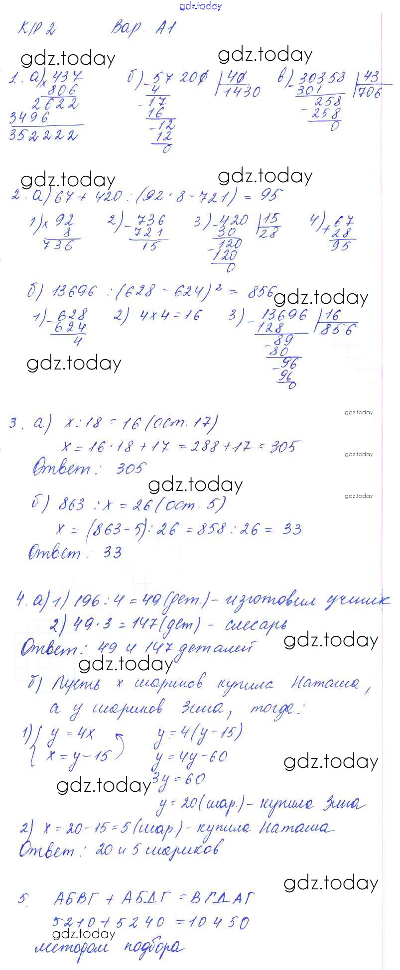 На страницах сайта gdz.today вы найдете учебный и вспомогательный материал, направленный на улучшения знаний школьной программы. ГДЗ - онлайн мир знаний Решение к КР-2. Варианты 1 Контрольным работам по Математике для 5 класса Ерина Экзамен УМК 2020