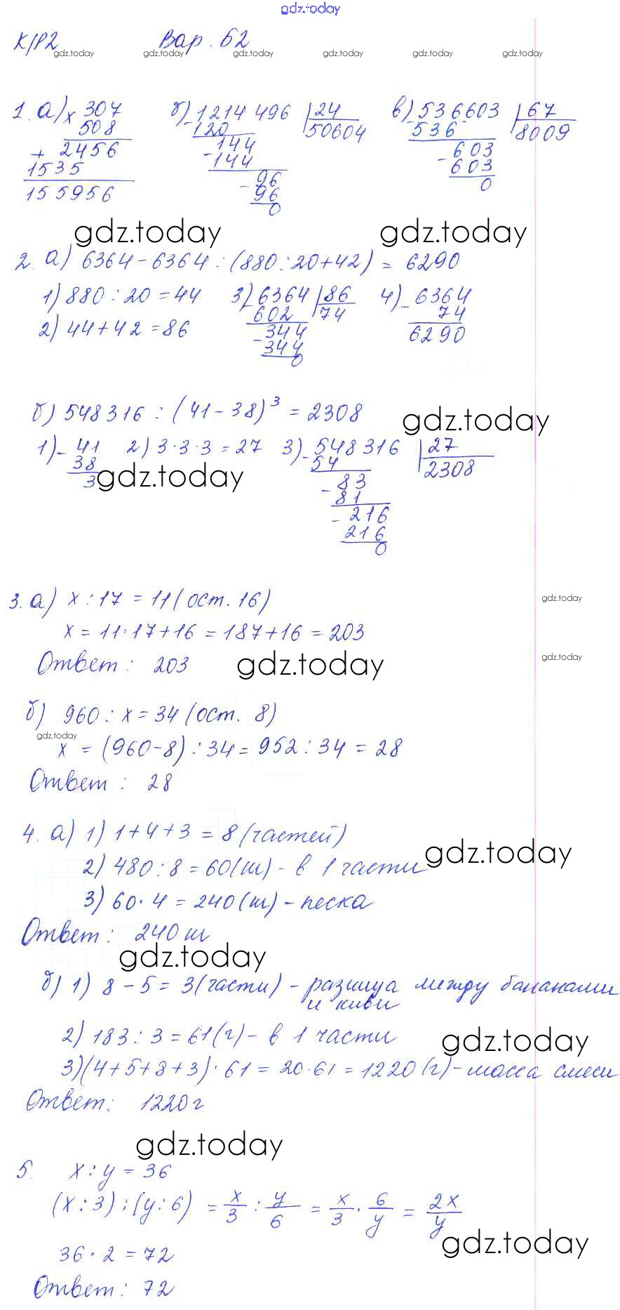 Ответы к Решение к КР-2. Варианты 4 Контрольным работам по Математике для 5 класса Ерина Экзамен УМК 2020
