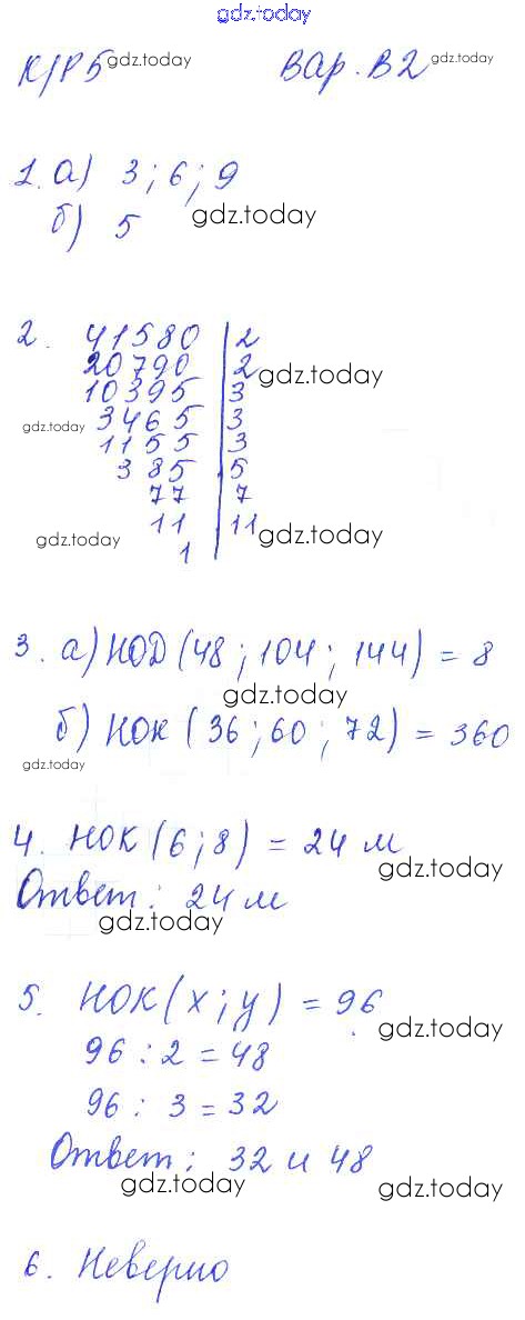 Ответы к Решение к КР-5. Варианты 6 Контрольным работам по Математике для 5 класса Ерина Экзамен УМК 2020