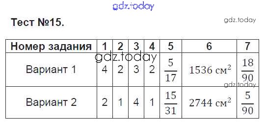 Ответы к Решение к тестам Тест №15 Контрольно-измерительным материалам (КИМ) по Математике для 5 класса Глазков, Ахременкова Экзамен 2014