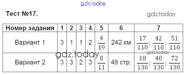 Ответы к Решение к тестам Тест №17 Контрольно-измерительным материалам (КИМ) по Математике для 5 класса Глазков, Ахременкова Экзамен 2014