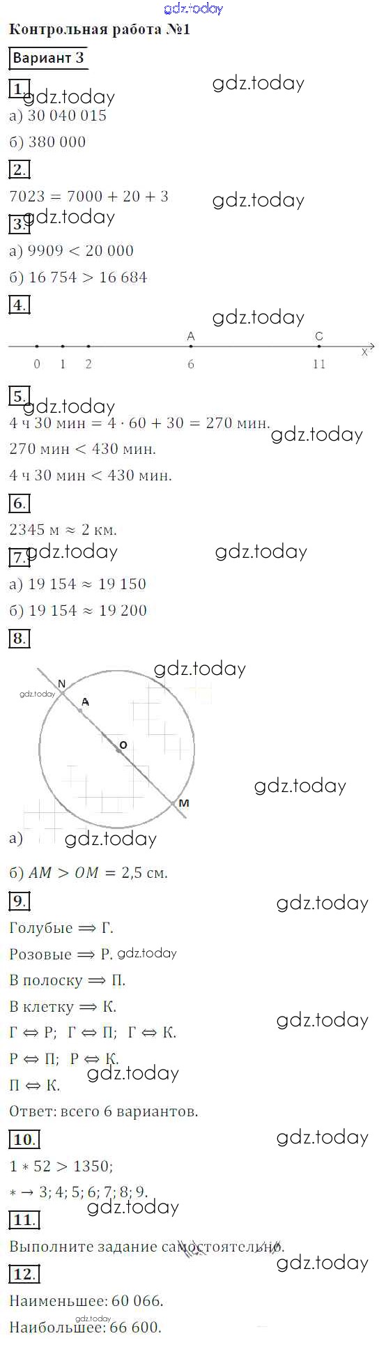 Ответы к Решение к КР №1. Натуральные числа. Линии вариант-3 Контрольным работам по Математике для 5 класса Кузнецова, Минаева Просвещение 2018