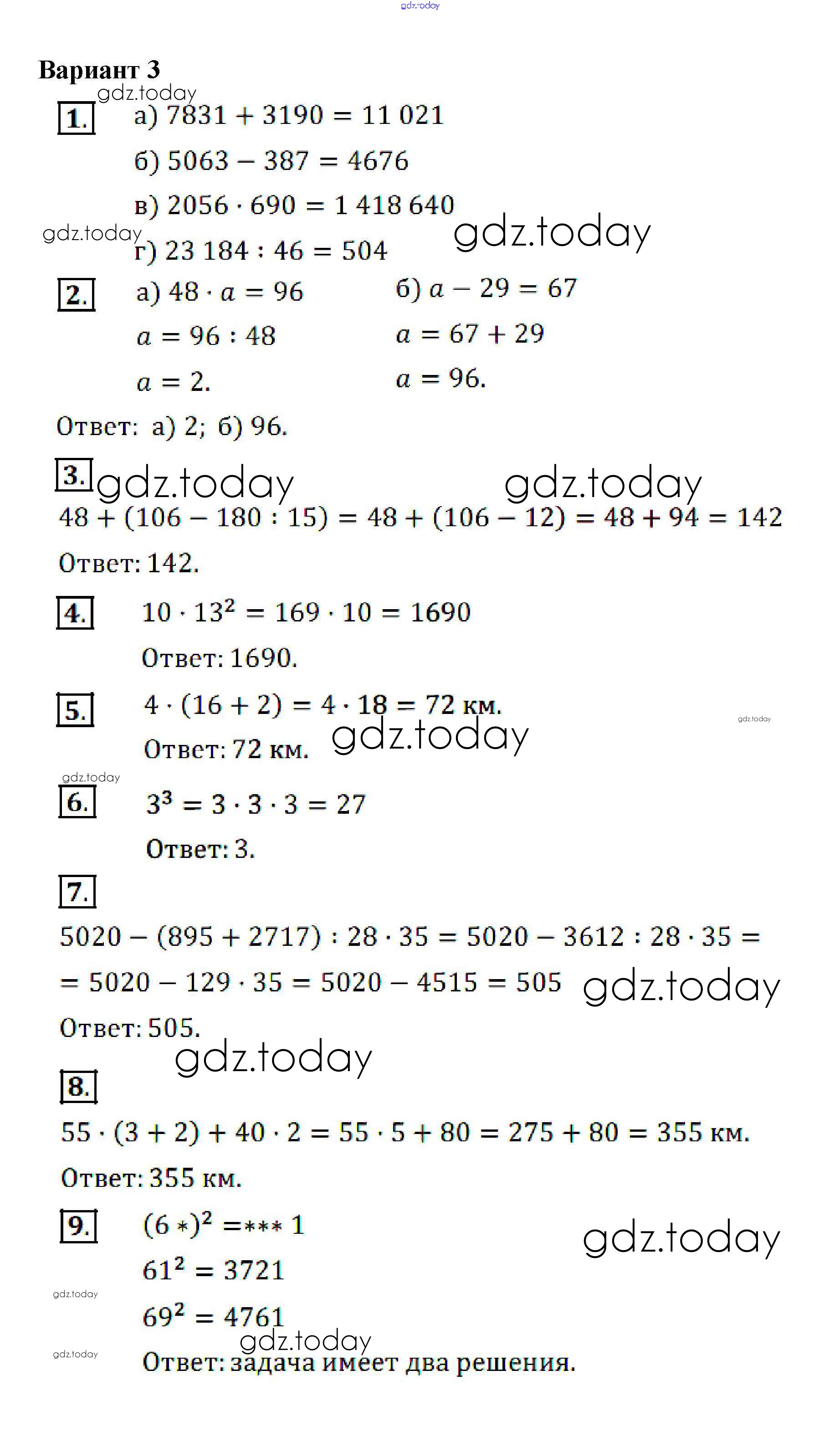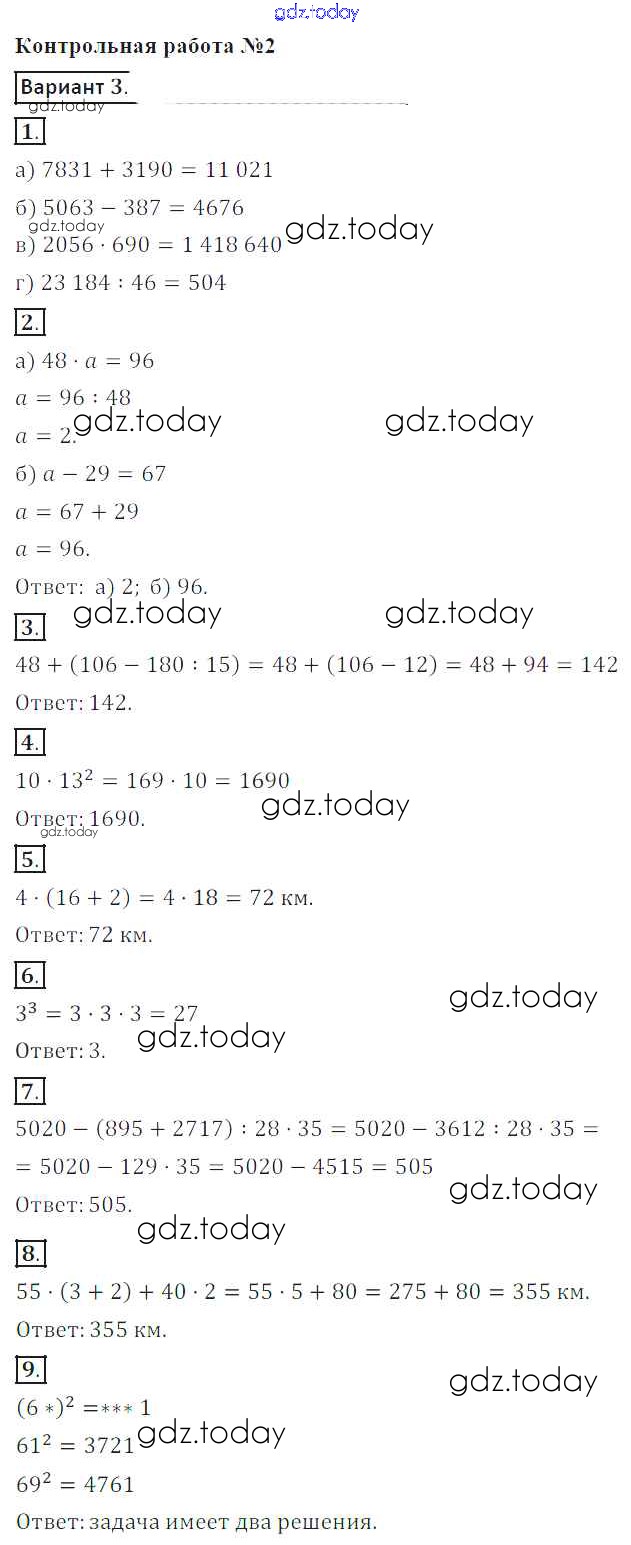 На страницах сайта gdz.today вы найдете учебный и вспомогательный материал, направленный на улучшения знаний школьной программы. ГДЗ - онлайн мир знаний Решение к КР №2. Действия с натуральными числами вариант-3 Контрольным работам по Математике для 5 класса Кузнецова, Минаева Просвещение 2018