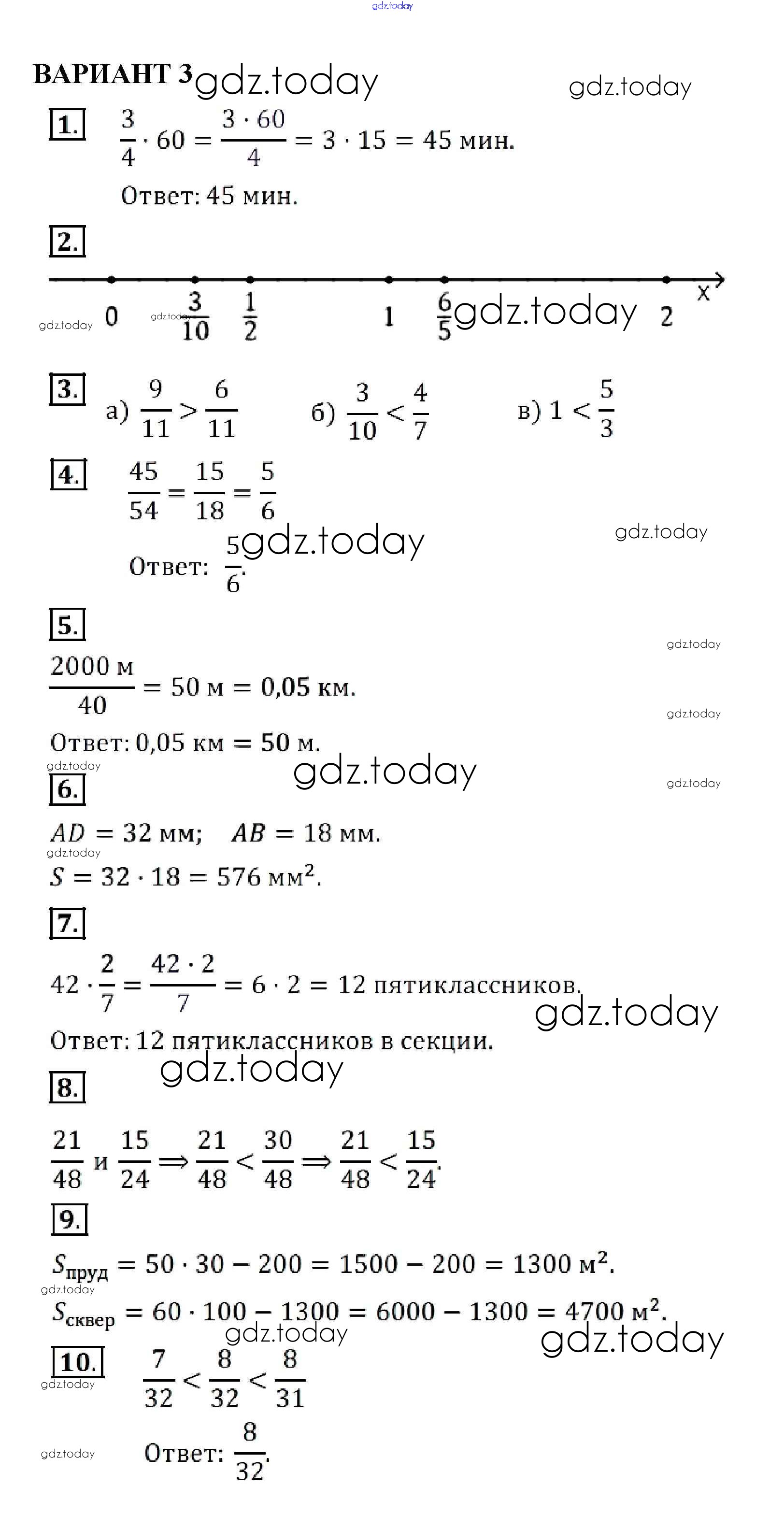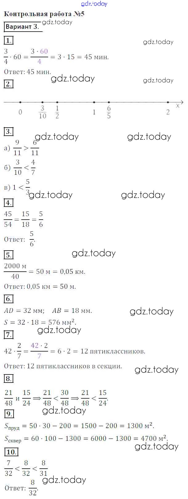 Ответы к Решение к КР №5. Дроби. Треугольник и четырехугольники вариант-3 Контрольным работам по Математике для 5 класса Кузнецова, Минаева Просвещение 2018