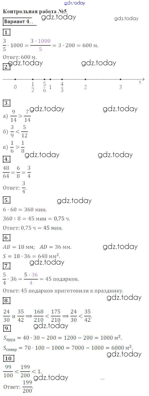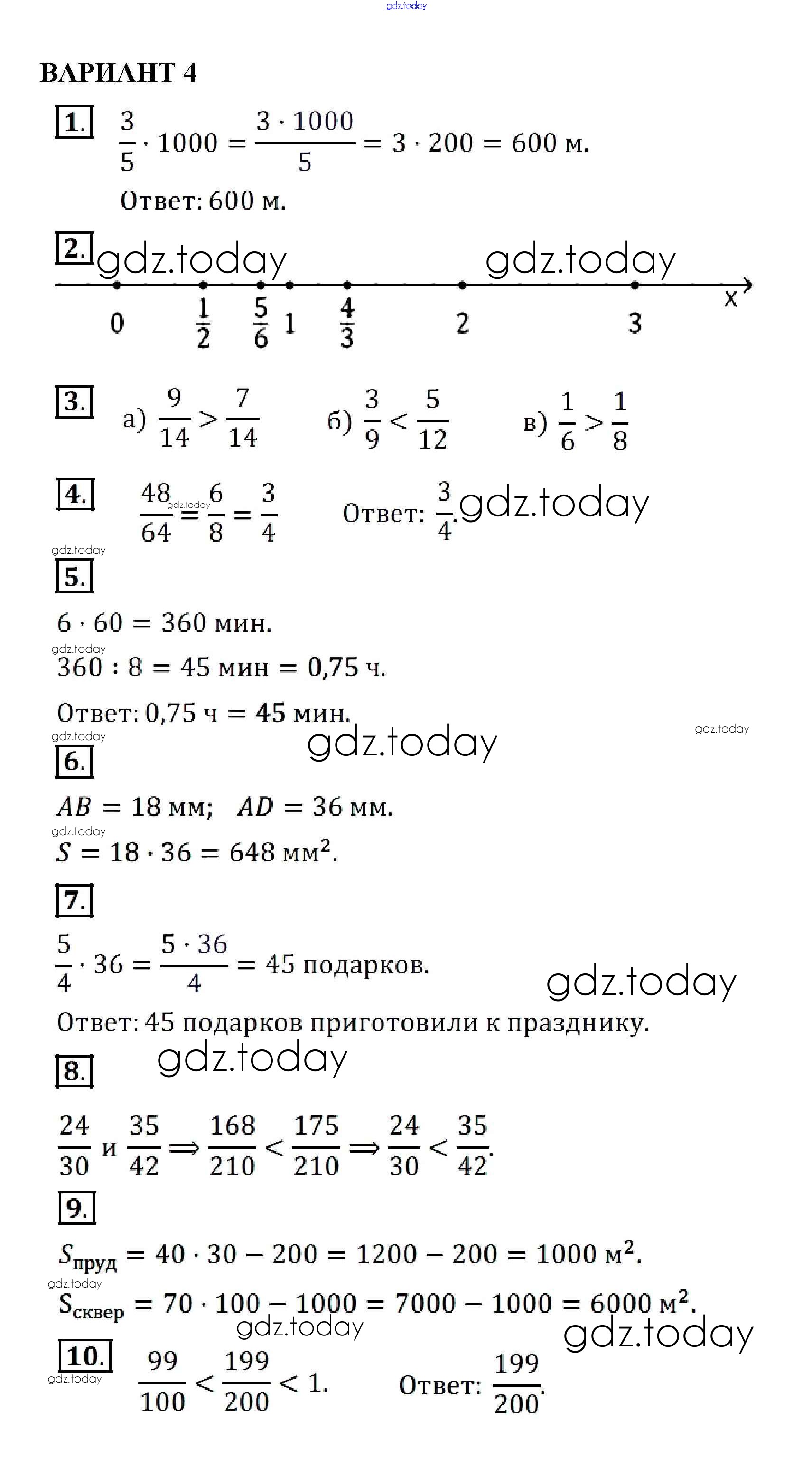 Ответы к Решение к КР №5. Дроби. Треугольник и четырехугольники вариант-4 Контрольным работам по Математике для 5 класса Кузнецова, Минаева Просвещение 2018