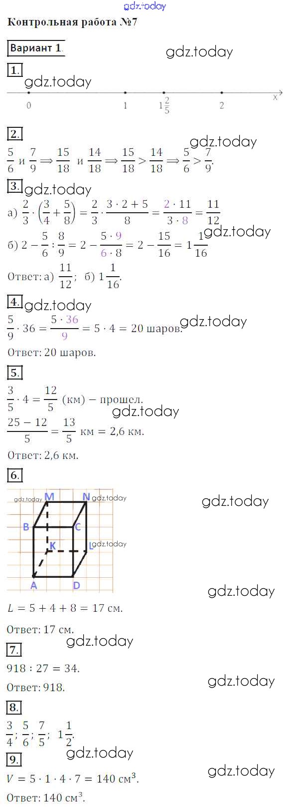 Ответы к Решение к КР №7. Повторение материала курса 5 класса. Многогранники вариант-1 Контрольным работам по Математике для 5 класса Кузнецова, Минаева Просвещение 2018