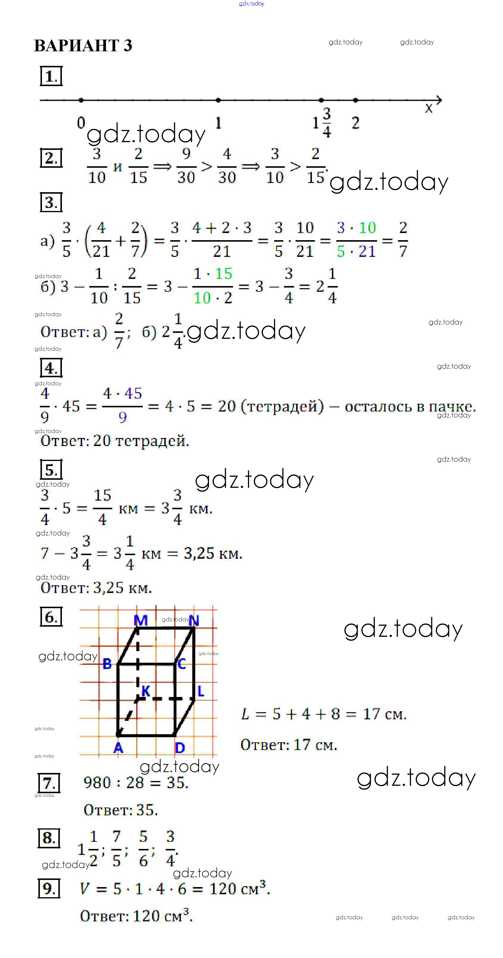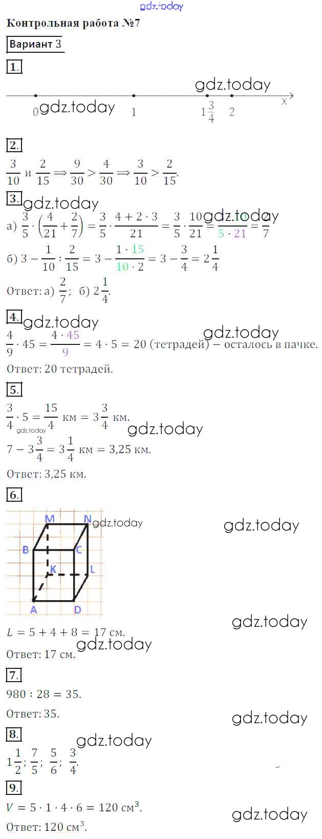 Ответы к Решение к КР №7. Повторение материала курса 5 класса. Многогранники вариант-3 Контрольным работам по Математике для 5 класса Кузнецова, Минаева Просвещение 2018