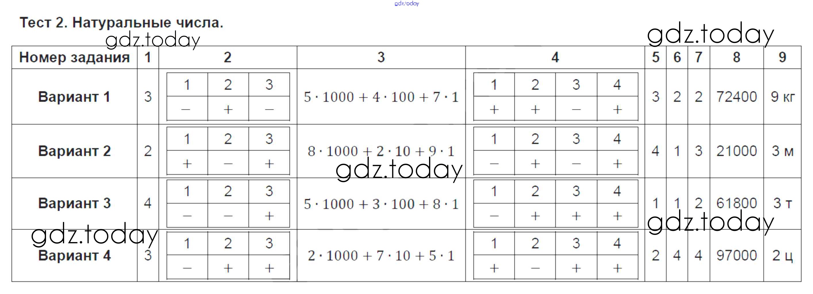 На страницах сайта gdz.today вы найдете учебный и вспомогательный материал, направленный на улучшения знаний школьной программы. ГДЗ - онлайн мир знаний Решение к тестам Тест №2. Натуральные числа Тематическим тестам по Математике для 5 класса Кузнецова, Минаева Просвещение 2018