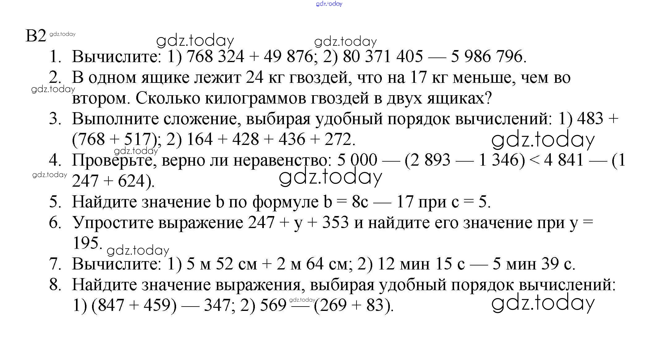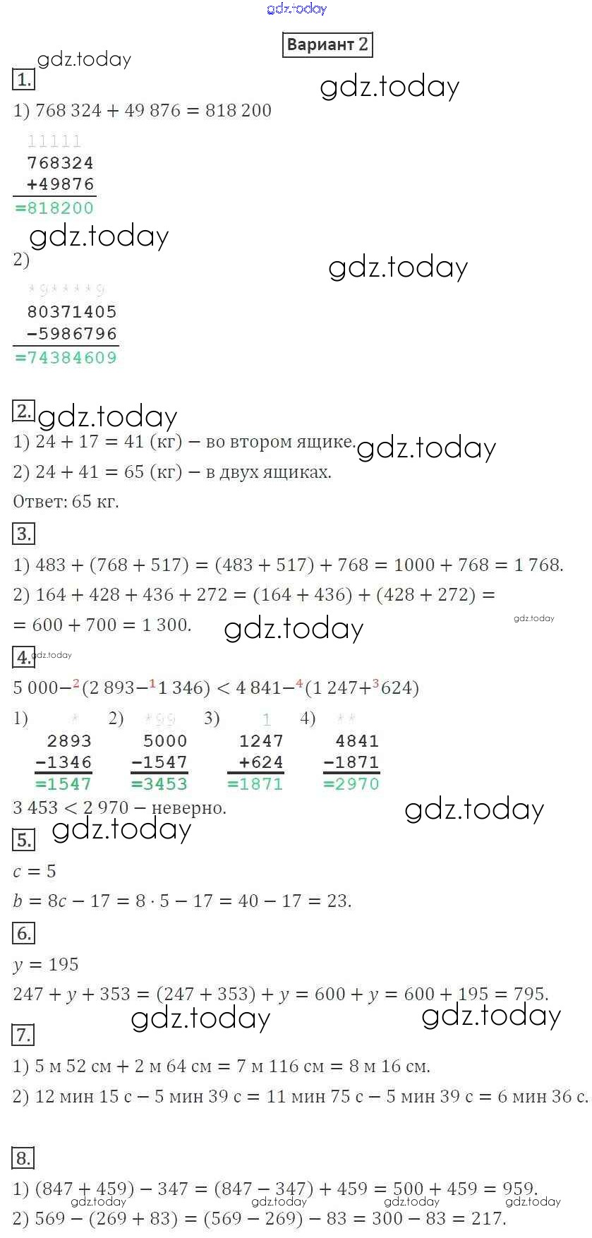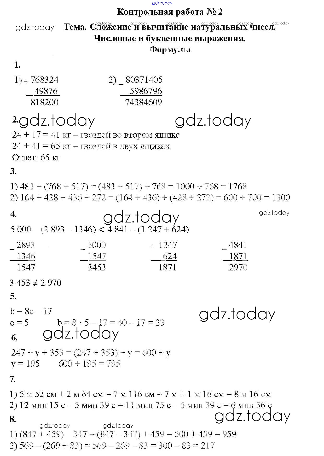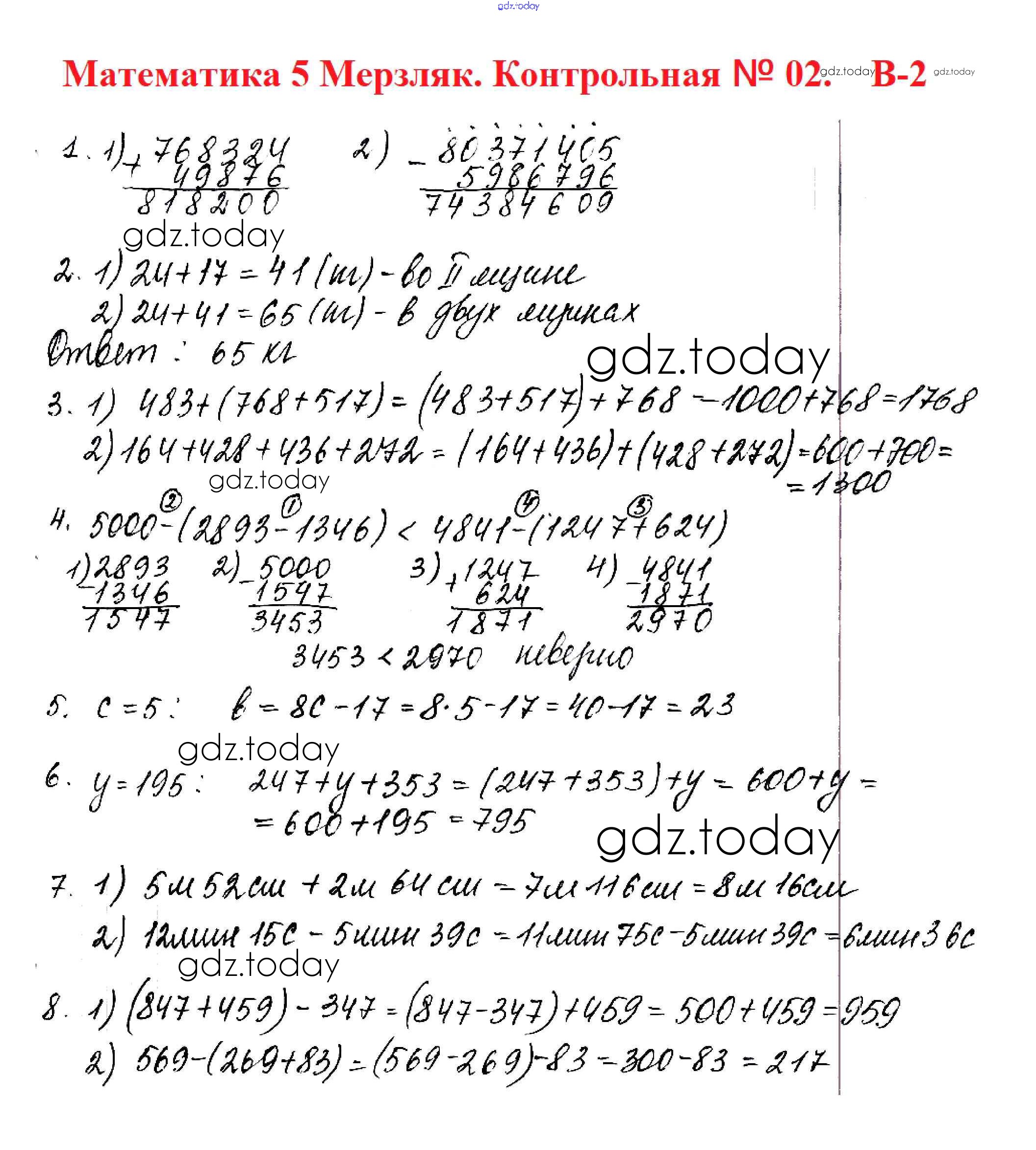 Ответы к КР №2. Сложение и вычитание натуральных чисел. Числовые и буквенные выражения. Числа Решение к контрольные работам вариант 2 Дидактическим материалам по Математике для 5 класса Мерзляк, Полонский Вентана-граф Алгоритм успеха 2017
