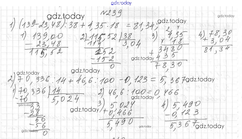 На страницах сайта gdz.today вы найдете учебный и вспомогательный материал, направленный на улучшения знаний школьной программы. ГДЗ - онлайн мир знаний Вариант 1 Решение к упражнениям 239 Дидактическим материалам по Математике для 5 класса Мерзляк, Полонский Вентана-граф Алгоритм успеха 2017