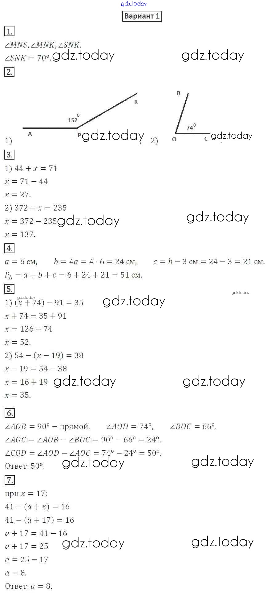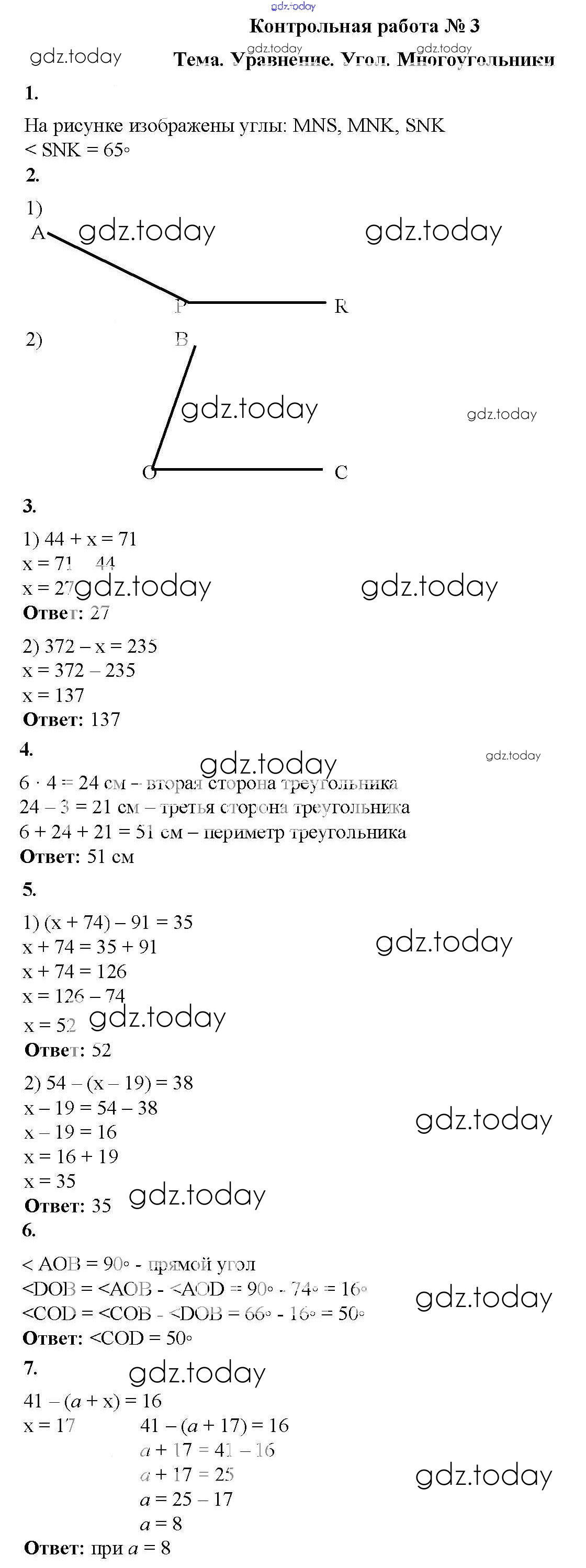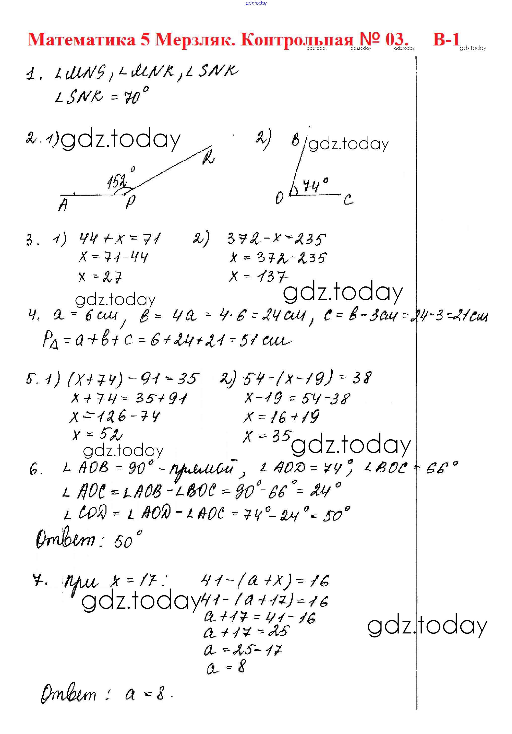 Ответы к КР №3. Уравнение. Угол. Многоугольники Решение к контрольные работам вариант 1 Дидактическим материалам по Математике для 5 класса Мерзляк, Полонский Вентана-граф Алгоритм успеха 2017