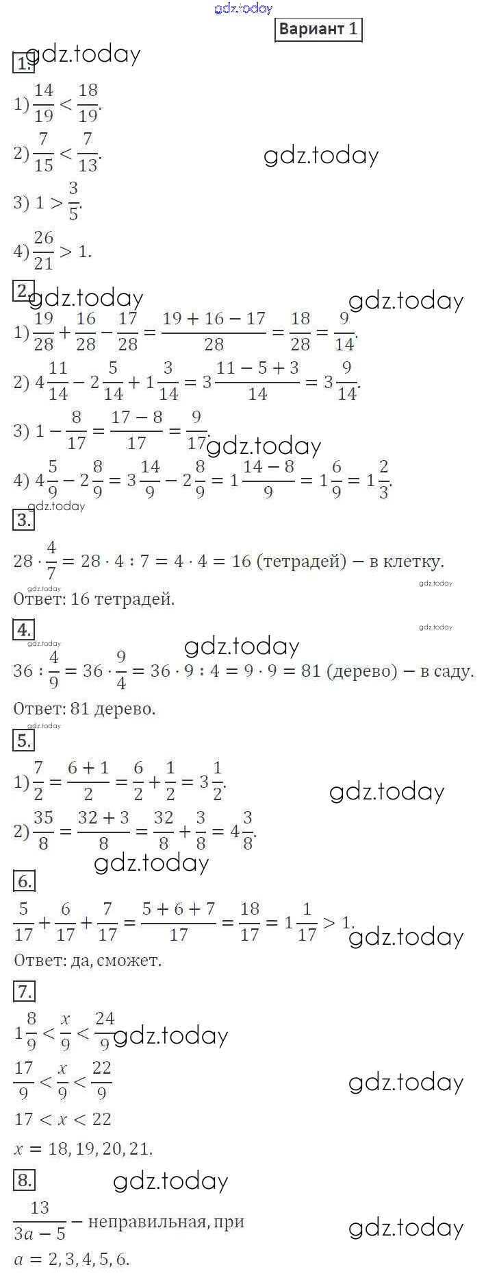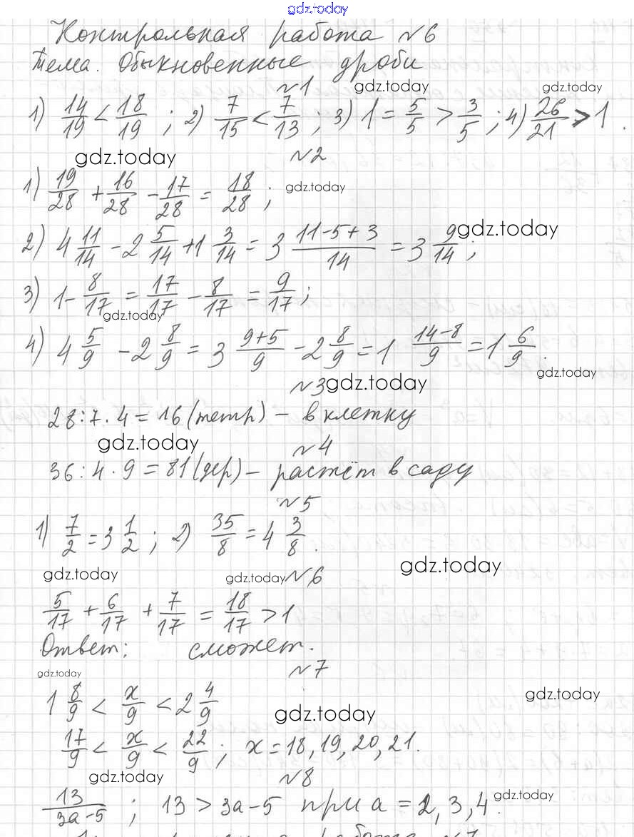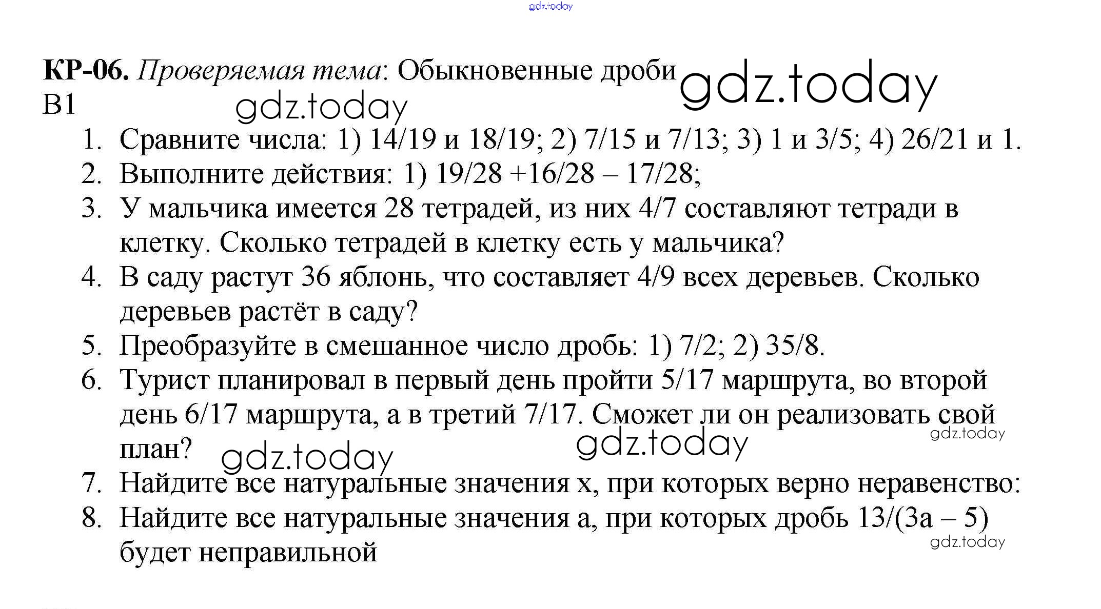 На страницах сайта gdz.today вы найдете учебный и вспомогательный материал, направленный на улучшения знаний школьной программы. ГДЗ - онлайн мир знаний КР №6. Обыкновенные дроби Решение к контрольные работам вариант 1 Дидактическим материалам по Математике для 5 класса Мерзляк, Полонский Вентана-граф Алгоритм успеха 2017