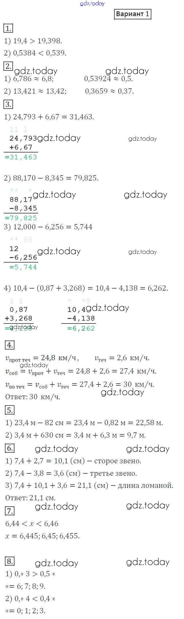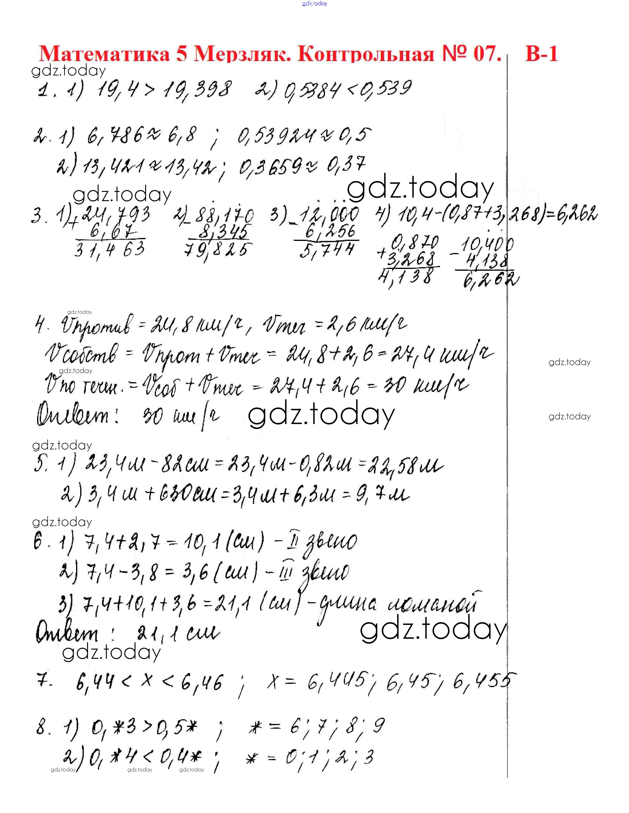 Ответы к КР №7. Понятие о десятичной дроби. Сравнение, округление, сложение и вычитание Решение к контрольные работам вариант 1 Дидактическим материалам по Математике для 5 класса Мерзляк, Полонский Вентана-граф Алгоритм успеха 2017