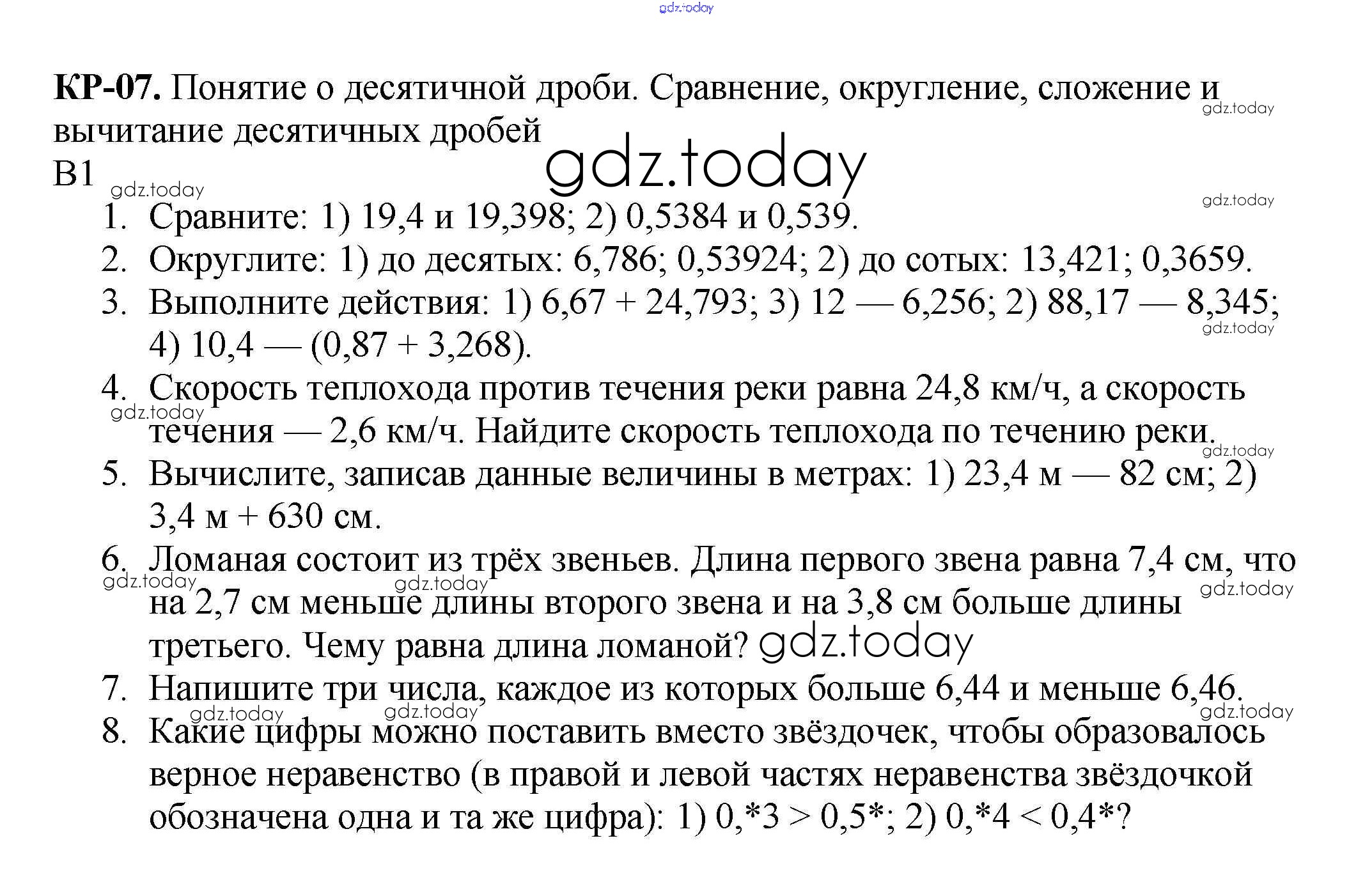 На страницах сайта gdz.today вы найдете учебный и вспомогательный материал, направленный на улучшения знаний школьной программы. ГДЗ - онлайн мир знаний КР №7. Понятие о десятичной дроби. Сравнение, округление, сложение и вычитание Решение к контрольные работам вариант 1 Дидактическим материалам по Математике для 5 класса Мерзляк, Полонский Вентана-граф Алгоритм успеха 2017