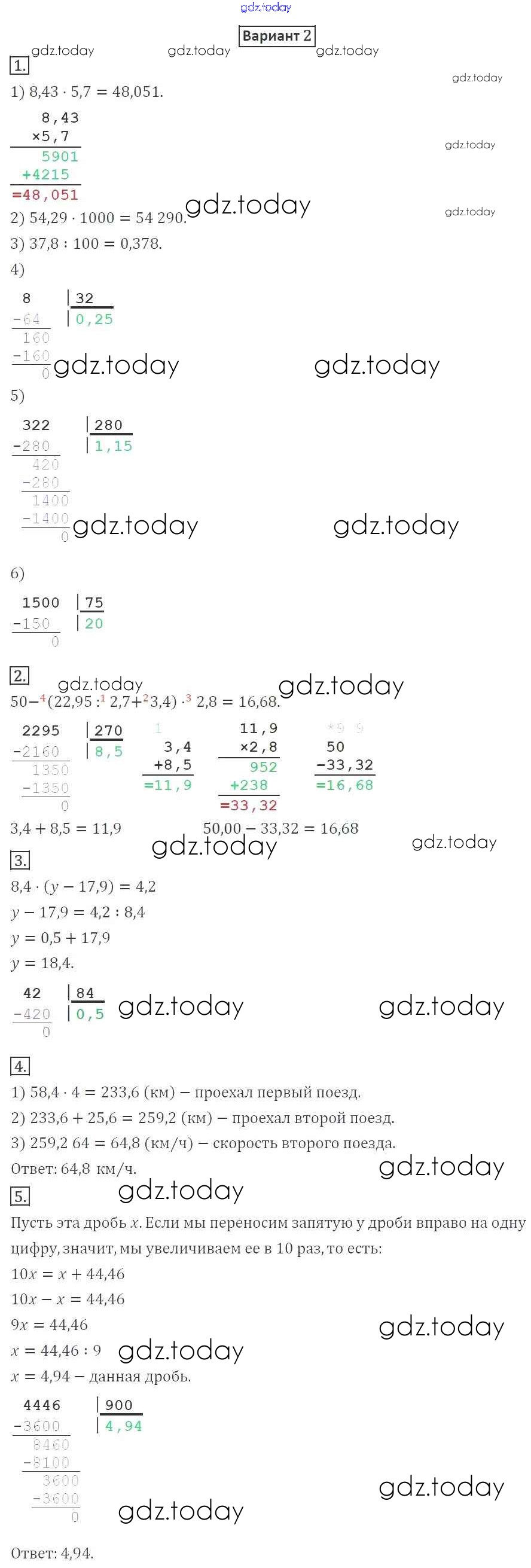 На страницах сайта gdz.today вы найдете учебный и вспомогательный материал, направленный на улучшения знаний школьной программы. ГДЗ - онлайн мир знаний КР №8. Умножение и деление десятичных дробей Решение к контрольные работам вариант 2 Дидактическим материалам по Математике для 5 класса Мерзляк, Полонский Вентана-граф Алгоритм успеха 2017