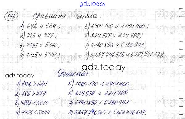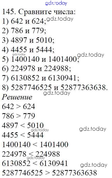 На страницах сайта gdz.today вы найдете учебный и вспомогательный материал, направленный на улучшения знаний школьной программы. ГДЗ - онлайн мир знаний §6. Сравнение натуральных чисел Решение к главе 1. Натуральные числа 145 Учебнику по Математике для 5 класса Мерзляк, Полонский Вентана-граф Алгоритм успеха 2016