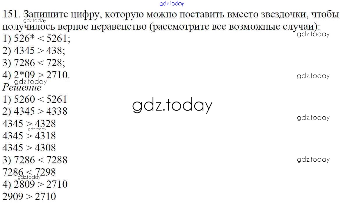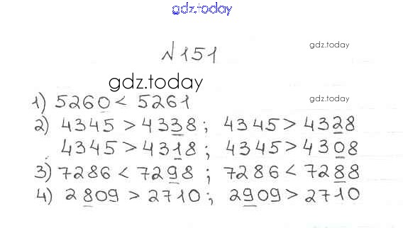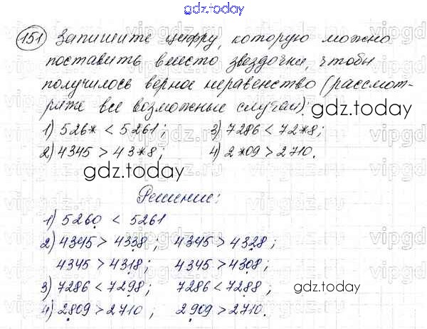 На страницах сайта gdz.today вы найдете учебный и вспомогательный материал, направленный на улучшения знаний школьной программы. ГДЗ - онлайн мир знаний §6. Сравнение натуральных чисел Решение к главе 1. Натуральные числа 151 Учебнику по Математике для 5 класса Мерзляк, Полонский Вентана-граф Алгоритм успеха 2016