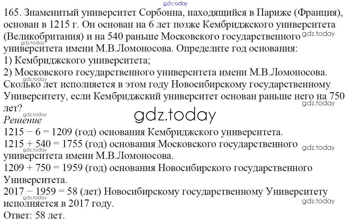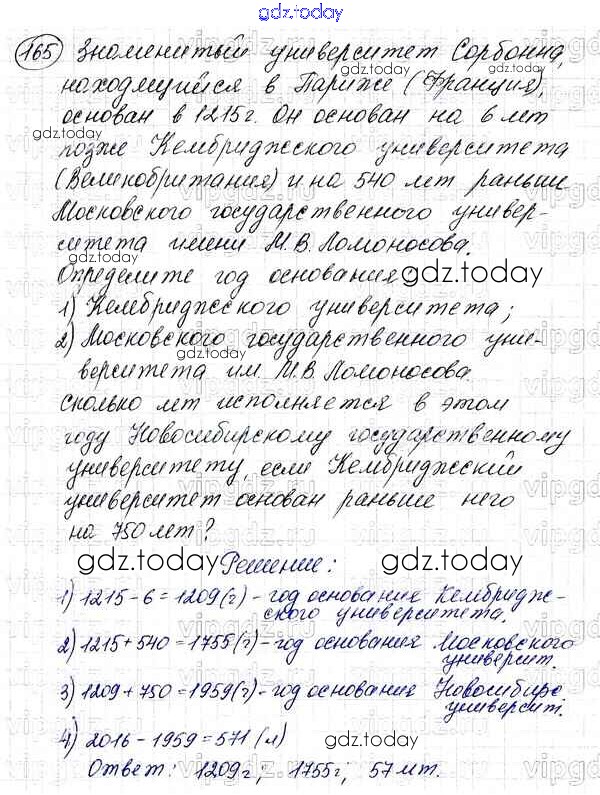 Ответы к §6. Сравнение натуральных чисел Решение к главе 1. Натуральные числа 165 Учебнику по Математике для 5 класса Мерзляк, Полонский Вентана-граф Алгоритм успеха 2016