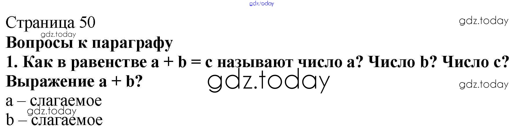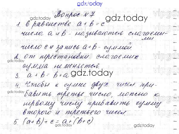 На страницах сайта gdz.today вы найдете учебный и вспомогательный материал, направленный на улучшения знаний школьной программы. ГДЗ - онлайн мир знаний Вопросы (страница 50) § 7. Сложение натуральных чисел. Свойства сложения страница 50 Учебнику по Математике для 5 класса Мерзляк, Полонский Вентана-граф Алгоритм успеха 2016