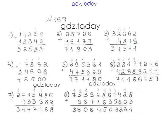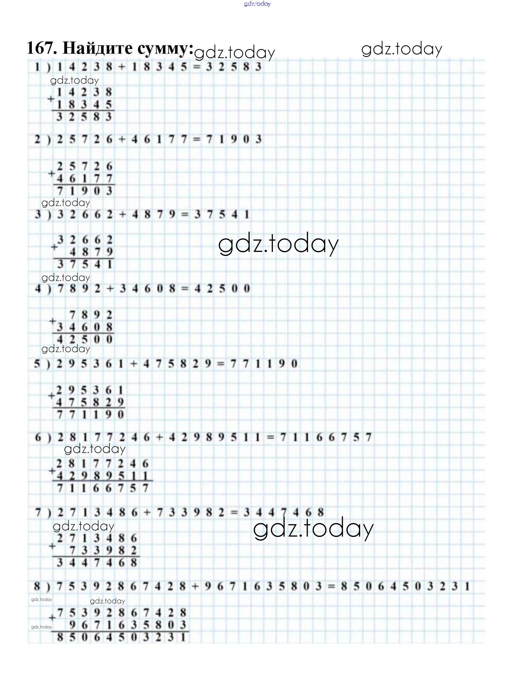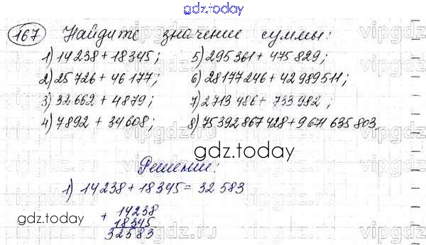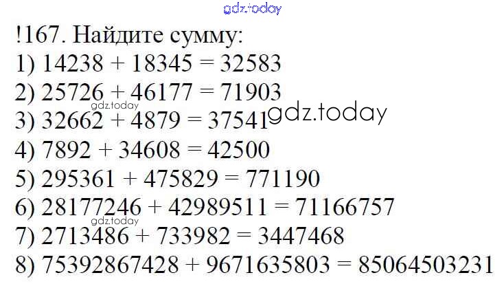 Ответы к § 7. Сложение натуральных чисел. Свойства сложения Решение к главе 2. Сложение и вычитание натуральных чисел 167 Учебнику по Математике для 5 класса Мерзляк, Полонский Вентана-граф Алгоритм успеха 2016