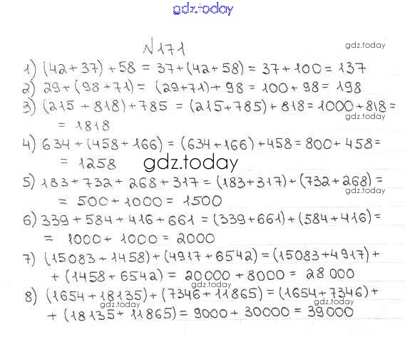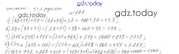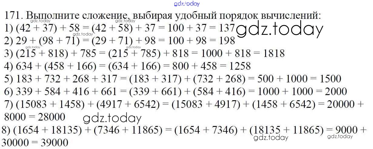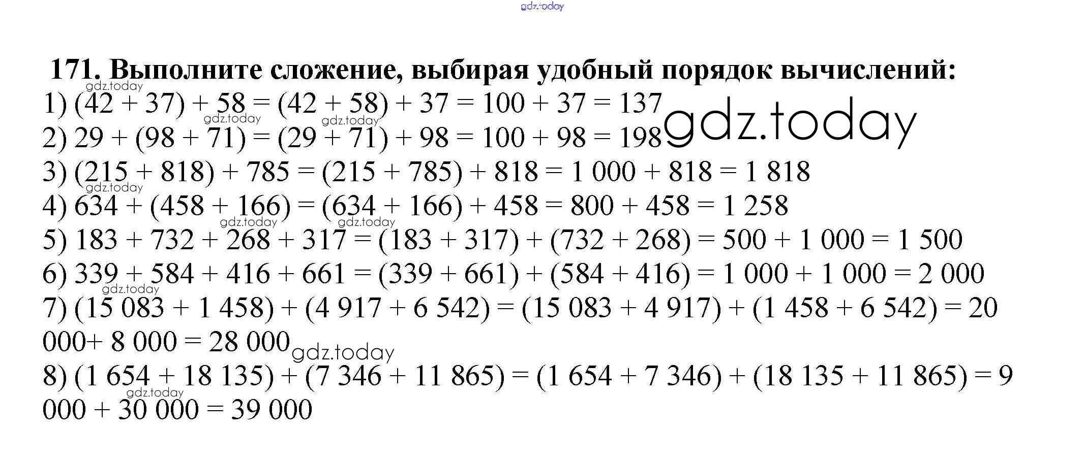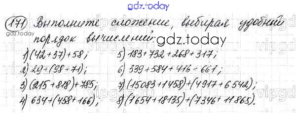 Ответы к § 7. Сложение натуральных чисел. Свойства сложения Решение к главе 2. Сложение и вычитание натуральных чисел 171 Учебнику по Математике для 5 класса Мерзляк, Полонский Вентана-граф Алгоритм успеха 2016