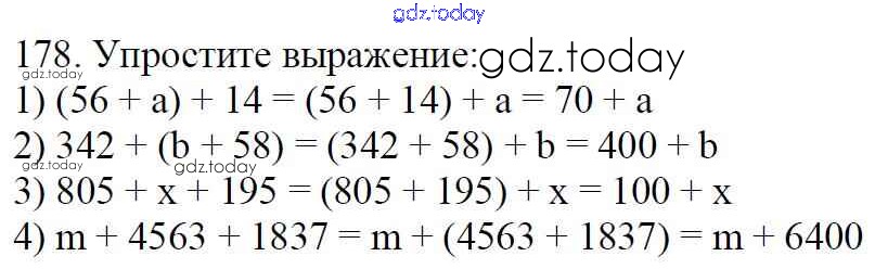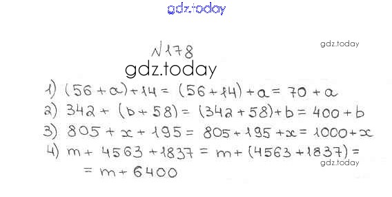 Ответы к § 7. Сложение натуральных чисел. Свойства сложения Решение к главе 2. Сложение и вычитание натуральных чисел 178 Учебнику по Математике для 5 класса Мерзляк, Полонский Вентана-граф Алгоритм успеха 2016