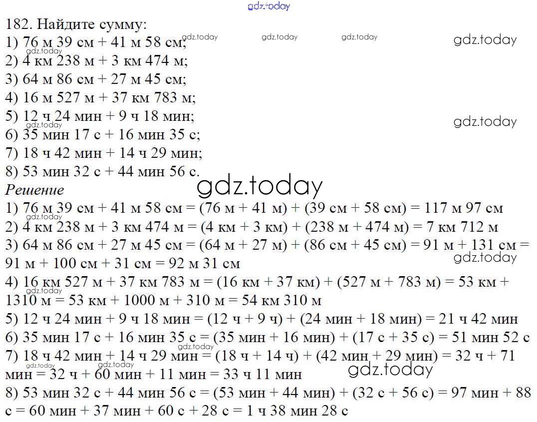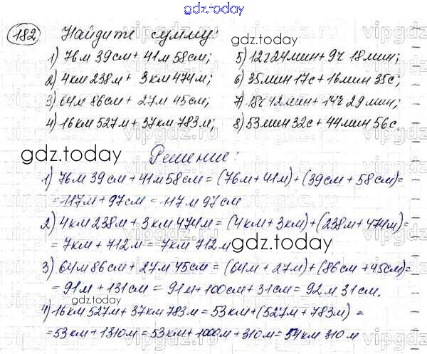 Ответы к § 7. Сложение натуральных чисел. Свойства сложения Решение к главе 2. Сложение и вычитание натуральных чисел 182 Учебнику по Математике для 5 класса Мерзляк, Полонский Вентана-граф Алгоритм успеха 2016