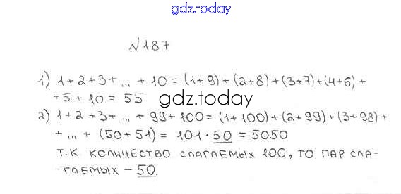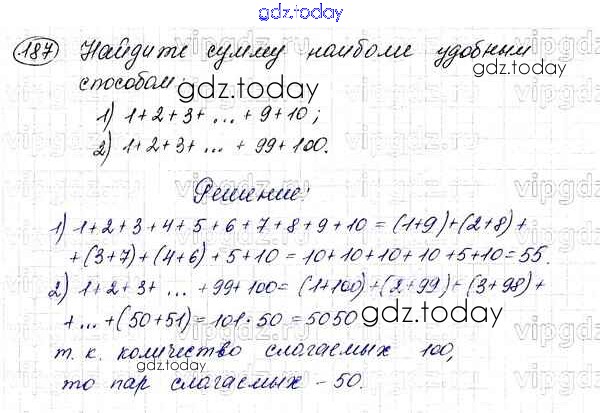 Ответы к § 7. Сложение натуральных чисел. Свойства сложения Решение к главе 2. Сложение и вычитание натуральных чисел 187 Учебнику по Математике для 5 класса Мерзляк, Полонский Вентана-граф Алгоритм успеха 2016