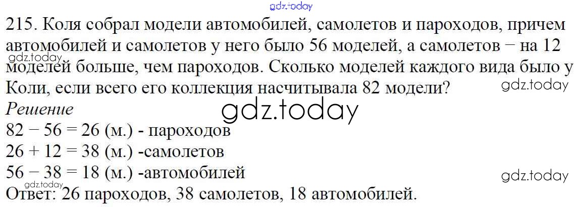 На страницах сайта gdz.today вы найдете учебный и вспомогательный материал, направленный на улучшения знаний школьной программы. ГДЗ - онлайн мир знаний §8. Вычитание натуральных чисел Решение к главе 2. Сложение и вычитание натуральных чисел 215 Учебнику по Математике для 5 класса Мерзляк, Полонский Вентана-граф Алгоритм успеха 2016