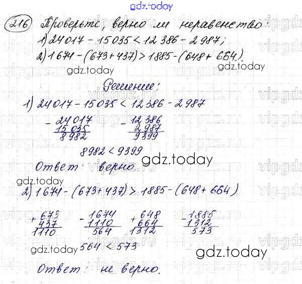 Ответы к §8. Вычитание натуральных чисел Решение к главе 2. Сложение и вычитание натуральных чисел 216 Учебнику по Математике для 5 класса Мерзляк, Полонский Вентана-граф Алгоритм успеха 2016