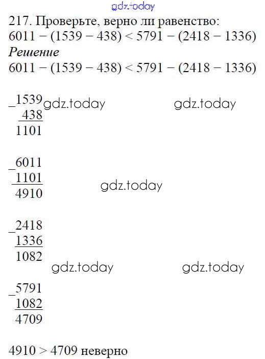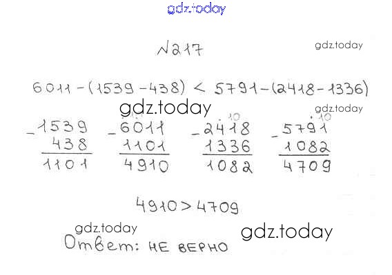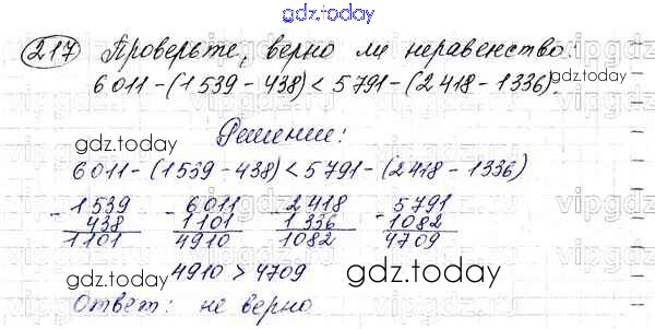 На страницах сайта gdz.today вы найдете учебный и вспомогательный материал, направленный на улучшения знаний школьной программы. ГДЗ - онлайн мир знаний §8. Вычитание натуральных чисел Решение к главе 2. Сложение и вычитание натуральных чисел 217 Учебнику по Математике для 5 класса Мерзляк, Полонский Вентана-граф Алгоритм успеха 2016