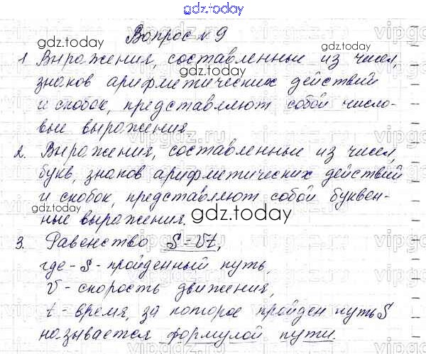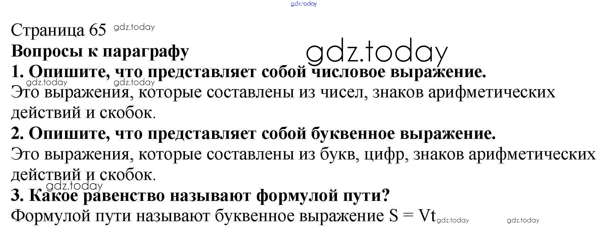Ответы к Вопросы (страница 65) §9. Числовые и буквенные выражения. Формулы страница 65 Учебнику по Математике для 5 класса Мерзляк, Полонский Вентана-граф Алгоритм успеха 2016